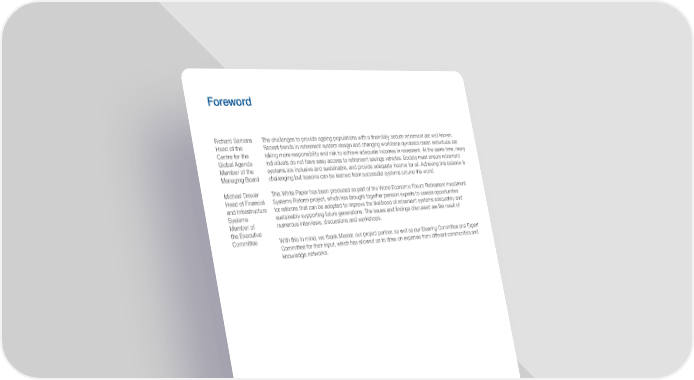 Foreword Richard Samans The challenges to provide ageing populations with a financially secure retirement are well known. Head of the Recent trends in retirement system design and changing workforce dynamics mean individuals are Centre for the taking more responsibility and risk to achieve adequate incomes in retirement. At the same time, many Global Agenda individuals do not have easy access to retirement savings vehicles. Society must ensure retirement Member of the systems are inclusive and sustainable, and provide adequate income for all. Achieving this balance is Managing Board challenging but lessons can be learned from successful systems around the world. Michael Drexler This White Paper has been produced as part of the World Economic Forum Retirement Investment Head of Financial Systems Reform project, which has brought together pension experts to assess opportunities and Infrastructure for reforms that can be adopted to improve the likelihood of retirement systems adequately and Systems sustainably supporting future generations. The issues and findings discussed are the result of Member of numerous interviews, discussions and workshops. the Executive Committee With this in mind, we thank Mercer, our project partner, as well as our Steering Committee and Expert Committee for their input, which has allowed us to draw on expertise from different communities and knowledge networks. How We Can Save (for) Our Future 5