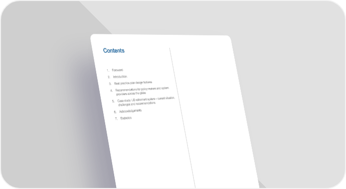 Contents 1. Foreword 2. Introduction 3. Best practice plan design features 4. Recommendations for policy-makers and system providers across the globe 5. Case study: US retirement system – current situation, challenges and recommendations 6. Acknowledgements 7. Endnotes How We Can Save (for) Our Future 3