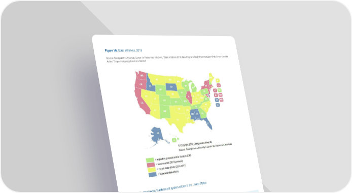 Figure 10: State initiatives, 2018 Source: Georgetown University Center for Retirement Initiatives, “State Initiatives 2018: New Programs Begin Implementation While Others Consider Action” (https://cri.georgetown.edu/states/) Figure 11: Challenges to retirement system reform in the United States Source: Authors A. Access B. Participation C. Adequate D. Efficient Asset Savings Decumulation In the US, There is a lack of Problems exist with clarity on the ability of Only one-third of regard to fund leakage employers are not states to require auto- Americans have during the currently required to enrolment and to saved enough for accumulation phase offer make employer retirement.21 and how to optimally a retirement participation use funds during savings plan. mandatory. Improved low-cost retirement. and simple tools are Opportunities to needed to ensure a provide incentives to secure retirement employers and income. employees are scarce. E. Implementation There are issues regarding how to move accounts between employers and how to ensure that the different types of accounts can be combined safely and easily. How We Can Save (for) Our Future 19