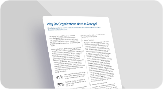 Why Do Organizations Need to Change? Disruptive technologies, new business models and the empowered consumer are accelerating industry change. Companies must transform to survive. For decades, the largest CPG and retail companies For consumer-centric industries, this Fourth Industrial dominated by exploiting economies of scale across a Revolution has three driving forces: linear value chain. Big-format shops offered wide ranges of products at competitive prices and – as long as those 1. Disruptive Technologies products delivered on expectations – consumer loyalty was The impact of technology is exponentially greater because assured. individual innovations increasingly work together. These Owning and selling big, global brands no longer guarantees “combinatorial technologies” have enabled new entrants survival. This trend is further challenging the long-standing to offer novel methods of consumer engagement that symbiotic relationship between CPG and retail. Manufacturers create, deliver and capture value. Barriers to entry have are selling directly to the consumer. Innovation has emerged fallen as visibility and brand presence no longer depend from unexpected sources, with small CPG companies on expensive television advertising. Combinatorial generating more than half of industry growth in many technologies are also transforming company operations. categories. Extrapolated across the industry, analysis Last year’s Future of Retail insight report outlined the indicates that half of future value will come from new sources impact of eight technologies on the value chain of 1 consumer industries. In the past 12 months, this impact of growth. Retailers and e-commerce players alike are has shifted and deepened at a faster rate than previously aggressively pursuing private labels. Five of the largest anticipated. For example, consider how 3D printing e-commerce players who dominate the global e-retail market companies have truncated R&D, scale production present the most compelling examples of value creation and distribution. Historically, rapid prototyping was through ecosystems. the core use-case in 3D printing; today, technological Percentage of S&P 500 Consumer Industry advancements have reframed these organizations as 41% companies that have gone bankrupt, been active scale manufacturers (that is, those that can actively, 2 in an agile way, scale operations up or down to meet acquired or ceased to exist since 2000. demand). These changes have long-reaching impacts, Percentage of today’s S&P 500 that are including the potential repatriation of manufacturing as 50% expected to face the same fate within the companies bring production closer to end consumers. next ten years.3 (For more on these changes, see Appendix A.) Percentage of global e-commerce market 2. Proliferating New Business Models 49% held by the top five largest retailers.4 Rapid growth in the number of new business models makes it much easier for companies to micro-target Percentage of US food and beverage offerings that meet precise consumer needs. Instead of industry growth captured by small companies employing a discrete business model, industry players will 53% in 2016 compared to 2% growth captured operate flexibly across a portfolio of models. No company by incumbents.5 will be able to do everything in-house. Firms that were previously standalone will need to become “ecosystem Companies must shift their strategies and make the related enablers”, where success is measured, in part, by adjustments in how they operate, or risk obsolescence. the overall impacts the system produces. This ability For incumbents, those existing companies currently at the will be dynamic, with the most successful companies forefront, this reality will compel them to undertake the largest continuously evolving what they do while making changes in operating models since the Second World War. conscious choices about how they generate economic value. 3. Empowered Consumers Ever-connected consumers have higher expectations than ever before as combinatorial technology and new business models provide many ways for them to discover, purchase and engage. Not only are consumers dictating exactly what they want, but they are embedding themselves at all stages of the value chain – acting as developers, marketers, salespeople and even employees. This is a fundamental change in the consumer value equation, amplifying historic drivers – cost, choice and convenience – and adding both control and end-to-end experience. 6 Operating Models for the Future of Consumption