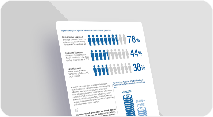 Figure 9: Example – Digital Skills Assessment within Marketing Function Digital-Native Marketers at younger companies born in the digital age (e.g. Email Marketing % Manager at VC-backed start-up) 76 Corporate Marketers at long-standing corporations that are transforming in the digital % age (e.g. Brand Manager at CPG) 44 Non-Marketers work in functions outside Marketing (e.g. Sales, IT, HR, % Legal, Creative) 38 In addition to sourcing talent across several internal and Figure 10: Cost Reduction of Radical Reskilling vs external workforces, companies need to consider reskilling Traditional Hiring for Software Engineers over Three rather than expensive recruitment of in-demand talent. Years General Assembly found that “radical reskilling” is 63% more 28 cost-effective than recruiting external software engineers. >$20,000 Massive Open Online Courses (MOOCs) and virtual learning are tools that scale and flex quickly to enable radical reskilling and meet changing market conditions. $5,000 – It is neither through ‘cheap labour’ nor through attracting $10,000 a narrow set of the ‘best and the brightest’ and winning a ‘war for talent’ that countries can optimize their long- term human capital potential, but through building up deep, diverse and resilient talent pools and skills ecosystems in their economies that allow for inclusive participation in good-quality, skilled jobs by the largest possible number of people. Traditional Radical Hiring Reskilling World Economic Forum – Human Capital Report, 2017 18 Operating Models for the Future of Consumption