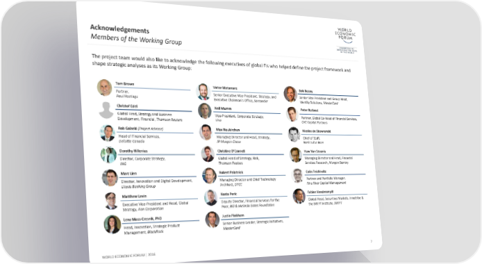 Acknowledgements Members of the Working Group The project team would also like to acknowledge the following executives of global FIs who helped define the project framework and shape strategic analyses as its Working Group: Tom Brown Victor Matarranz Bob Reany Partner, Senior Executive Vice-President, Strategy, and Senior Vice-President and Group Head, Paul Hastings Executive Chairman’s Office, Santander Identity Solutions, MasterCard Christof Edel Neil Mumm Peter Rutland Global Head, Strategy and Business Vice-President, Corporate Strategy, Partner, Global Co-Head of Financial Services, Development, Financial, Thomson Reuters Visa CVC Capital Partners Rob Galaski (Project Advisor) Max Neukirchen Nicolas de Skowronski Head of Financial Services, Managing Director and Head, Strategy, Chief of Staff, Deloitte Canada JP Morgan Chase Bank Julius Baer Dorothy Hillenius Christine O’Connell HuwVan Steenis Director, Corporate Strategy, Global Head of Strategy, Risk, Managing Director and Head, Financial ING Thomson Reuters Services Research, Morgan Stanley Marc Lien Robert Palatnick Colin Teichholtz Director, Innovation and Digital Development, Managing Director and Chief Technology Partner and Portfolio Manager, Lloyds Banking Group Architect, DTCC Pine River Capital Management Matthew Levin Kosta Peric FabienVandenreydt Executive Vice-President and Head, Global DeputyDirector, Financial Services for the Global Head, Securities Markets, Innotribe & Strategy, Aon Corporation Poor, Bill & Melinda Gates Foundation the SWIFT Institute, SWIFT Lena Mass-Cresnik, PhD Justin Pinkham Head, Innovation, Strategic Product Senior Business Leader, Strategic Initiatives, Management, BlackRock MasterCard WORLD ECONOMIC FORUM | 2016 7