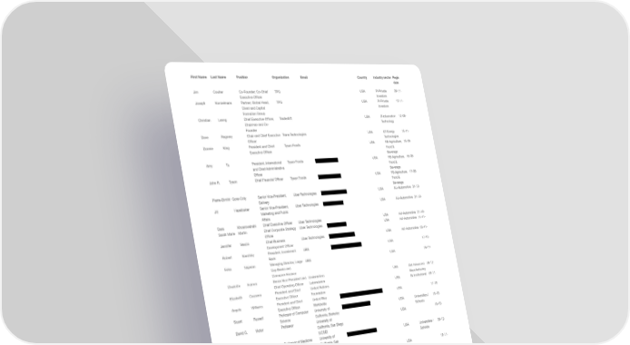 First Name Last Name Position Organization Email Country Industry sector Regis date Jim Coulter Co-Founder; Co-Chief TPG USA PI-Private 09-11- Executive Officer Investors Joseph Konzelmann Partner; Global Head, TPG USA PI-Private 15-11- Client and Capital Investors Formation Group Christian Lanng Chief Executive Officer, Tradeshift USA IT-Information 12-08- Chairman and Co- Technology Founder Dave Regnery Chair and Chief Executive Trane Technologies USA ET-Energy 15-11- Officer Technologies Donnie King President and Chief Tyson Foods USA FB-Agriculture, 15-08- Executive Officer Food & Beverage Amy Tu President, International Tyson Foods USA FB-Agriculture, 16-08- and Chief Administrative Food & Officer Beverage John R. Tyson Chief Financial Officer Tyson Foods USA FB-Agriculture, 17-08- Food & Beverage Pierre-Dimitri Gore-Coty Senior Vice-President, Uber Technologies USA AU-Automotive 31-10- Delivery Jill Hazelbaker Senior Vice-President, Uber Technologies USA AU-Automotive 31-10- Marketing and Public Affairs Dara Khosr owshahi Chief Executive Officer Uber Technologies USA AU-Automotive 31-10- Sarah Marie Martin Chief Corporate Strategy Uber Technologies USA AU-Automotive 14-11- Officer Jennifer Vescio Chief Business Uber Technologies USA AU-Automotive 03-11- Development Officer Robert Karofsky President, Investment UBS USA 17-10- Bank Erika Najarian Managing Director, Large- UBS USA 28-11- Cap Banks and Consumer Finance Charlotte Farmer Senior Vice-President and Underwriters USA AM-Advanced 08-12- Chief Operating Officer Laboratories Manufacturing Elizabeth Cousens President and Chief United Nations USA IN-Institutional 09-11- Executive Officer Foundation Angela Williams President and Chief United Way USA 17-10- Executive Officer Worldwide Stuart Russell Professor of Computer University of USA Universities / 19-10- Science California, Berkeley Schools David G. Victor Professor University of USA 19-10- California, San Diego (UCSD) Louise Aronson Professor of Medicine University of USA Universities / 05-12- California, San Schools Francisco (UCSF) Douglas McCauley Director, Benioff Ocean University of USA 18-11- Initiative; Professor California, Santa Barbara Paul Alivisatos President University of USA Universities / 19-10- Chicago Schools Raghuram G. Rajan Katherine Dusak Miller University of USA 21-10- Distinguished Service Chicago Booth Professor of Finance School of Business Jay Lee Ohio Eminent Scholar and University of USA 16-11- Founding Director of Cincinnati Industrial AI Center Ben Wright Founder and Chief Velocity Global USA 08-11- Executive Officer Rima Qureshi Executive Vice-President Verizon USA DC-Digital 30-09- and Chief Strategy Officer Communications Communications Hans Vestberg Chairman and Chief Verizon USA D C-Digital 19-08- Executive Officer Communications Communications Vik Muniz Artist Vik Muniz Studio USA 06-12- O. Andreas Halvorsen Founder and Chief Viking Global USA PI-Private 15-08- Executive Officer Investors Investors Brian Kaufmann Head, Private Equity; Viking Global USA PI-Private 16-08- Portfolio Manager; Investors Investors Member of the Management Committee Anjali Sud Chief Executive Officer Vimeo USA IT-Information 16-11- Technology Alfred Kelly Jr Chairman and Chief Visa USA BK-Banking & 19-10- Executive Officer Capital Markets Ryan McInerney President Visa USA BK-Banking & 19-10- Capital Markets Robert Thomson Global Head, Government Visa USA BK-Banking & 25-10- Engagement Capital Markets