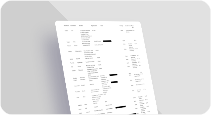 First Name Last Name Position Organization Email Country Industry sector Regis date Yoshito Hori Founder and President, GLOBIS Japan PS-Professional 16-09- GLOBIS University; Services Founding Partner, GLOBIS Capital Partners; Chairman and Chief Executive Officer Taejun Shin Founder and Chief Gojo & Company Japan 16-11- Executive Officer Takaaki Hirotsu President & CEO Hirotsu Bio Science Japan HE-Global 18-11- Health & Healthcare Lorena Dellagiovanna Vice-President; Chief Hitachi Japan IT-Information 08-11- Sustainability Officer; Technology Chief Diversity, Equity and Inclusion Officer Alistair Dormer Chairman, Europe Hitachi Japan IT-Information 01-12- Technology Toshiaki Higashihara Executive Chairman Hitachi Japan IT-Information 08-11- Technology Keiji Kojima President and Chief Hitachi Japan IT-Information 08-11- Executive Officer Technology Toshiaki Tokunaga Representative Executive Hitachi Japan IT-Information 08-11- Officer, Executive Vice- Technology President and Executive Officer Shoukei Matsumoto Founder, Buddhist Monk Interbeing Japan 17-11- Shigeto Hashiyama Executive Managing Japan Bank for Japan BK-Banking & 13-10- Director International Capital Markets Cooperation (JBIC) Nobumitsu Hayashi Governor Japan Bank for Japan BK-Banking & 04-10- International Capital Markets Cooperation (JBIC) Nobuhiko Sasaki Chairman and Chief Japan External Trade Japan IN-Institutional 14-11- Executive Officer Organization (JETRO) Yukio Kani Corporate Vice-President; JERA Japan EU-Energy 17-10- Managing Executive Utilities Officer, Business Development Toshihiro Sano Chairman JERA Japan EU-Energy 12-08- Utilities Kohei Itoh President Keio University Japan Universities / 21-10- Schools Heizo Takenaka Professor Emeritus Keio University Japan Universities / 05-12- Schools Tetsuji Ida Senior Staff Writer and Kyodo News Japan ME-Media, 28-10- Editorial Writer Entertainment and Sport Sadanobu Takemasu President and Chief Lawson Japan RC-Retail, 26-09- Executive Officer, Consumer Representative Director Goods & and Chairman of the Lifestyle Board Yasuteru Hirai Director, Executive Vice- Mitsubishi Japan ET-Energy 11-11- President Technologies Shunichi Miyanaga Chairman of the Board Mitsubishi Heavy Japan EC-Engineering 11-11- Industries & Construction Kenichi Hori President and Chief Mitsui & Co. Japan OG-Oil & Gas 03-09- Executive Officer Yumi Yamaguchi Managing Officer, Deputy Mitsui & Co. Japan OG-Oil & Gas 31-10- Chief Strategy Officer; Deputy Chief Digital Information Officer Akio Hirahara Senior Managing Mitsui Chemicals Japan CH-Chemicals 10-11- Executive Officer Takeshi Hashimoto President and Chief Mitsui O.S.K. Lines Japan SCT-Supply 02-11- Executive Officer Chain & Transportation Toshinobu Shinoda Senior Managing Mitsui O.S.K. Lines Japan SCT-Supply 04-11- Executive Officer Chain & Transportation Masahiro Kihara President and Group Mizuho Financial Japan BK-Banking & 14-09- Chief Executive Officer Group Capital Markets Hidekatsu Take Head, Global Corporate Mizuho Financial Japan BK-Banking & 21-09- Company Group Capital Markets Hironori Kamezawa President and Group MUFG (Mitsubishi Japan BK-Banking & 20-10- Chief Executive Officer UFJ Financial Group) Capital Markets Fumitaka Nakahama Managing Executive MUFG Bank Japan BK-Banking & 19-10- Officer; Chief Executive, Capital Markets Global Corporate and Investment Banking