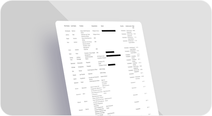First Name Last Name Position Organization Email Country Industry sector Regis date Christophe Salmon Group Chief Financial Trafigura Group Switzerland OGI-Oil & Gas 28-09- Officer Independent Jeremy Weir Chairman and Chief Trafigura Group Switzerland OGI-Oil & Gas 12-08- Executive Officer Independent Ralph Hamers Group Chief Executive UBS Switzerland BK-Banking & 11-10- Officer Capital Markets Suni Harford Member of the Group UBS Switzerland BK-Banking & 17-10- Executive Board; Capital Markets President, Asset Management Colm Kelleher Chairman UBS Switzerland BK-Banking & 13-10- Capital Markets Iqbal Khan President, Global Wealth UBS Switzerland BK-Banking & 17-10- Management Capital Markets Christy Hoffman General Secretary UNI Global Union Switzerland 31-10- Yves Flückiger Rector University of Geneva Switzerland Universities / 08-11- Schools Bernhard Ehrenzeller President University of St. Switzerland Universities / 03-11- Gallen Schools Michael Schaepman President University of Zurich Switzerland Universities / 24-10- Schools Dev Sanyal Chief Executive Officer VARO Energy Switzerland OGI-Oil & Gas 18-08- Independent Marcel van Poecke Chairman VARO Energy Switzerland OGI-Oil & Gas 19-08- Independent Martin Engstroem Founder and Executive Verbier Festival Switzerland 30-11- Director Bertrand Perez Chief Executive Officer Web 3.0 Switzerland IT-Information 18-08- Technologies Technology Foundation Emma Benameur Head of Impact and World Economic Switzerland 20-11- Engagement; Member of Forum the Executive Committee Francisco Betti Head, Shaping the Future World Economic Switzerland 20-11- of Advanced Forum Manufacturing & Value Chains; Member, ExCom Shyam Bishen Head, Shaping the Future World Economic Switzerland 20-11- of Health and Healthcare, Forum Member of Executive Committee Roberto Bocca Head of Shaping the World Economic Switzerland 20-11- Future of Energy and Forum Materials; Member of the Executive Committee Francois Bonnici Director, Schwab World Economic Switzerland 20-11- Foundation for Social Forum Entrepreneurship; Head, Social Innovation P eter Brabeck- Vice-Chairman of the World Economic Switzerland 02-11- Letmathe Board of Trustees Forum Børge Brende President World Economic Switzerland 22-11- Forum Sebastian Buckup Head of Network and World Economic Switzerland 20-11- Partnerships, Member of Forum the Executive Committee Sean de Cleene Head, Food Systems World Economic Switzerland 20-11- Initiative; Member of the Forum Executive Committee Sean Doherty Head, International Trade World Economic Switzerland 20-11- and Investment; Member Forum of the Executive Committee John Dutton Head, Uplink; Member of World Economic Switzerland 20-11- the Executive Committee Forum Mirek Dušek Managing Director World Economic Switzerland 22-11- Forum Julien Gattoni Managing Director; Chief World Economic Switzerland 22-11- Financial Officer Forum Antonia Gawel Head, Climate Change; World Economic Switzerland 20-11- Deputy Head, Centre for Forum Nature & Climate; ExCo Member Pedro Gomez Head of Shaping the World Economic Switzerland 20-11- Future of Mobility, Forum Member of the Executive Committee Kristin Hughes Director, Global Plastic World Economic Switzerland 20-11- Action Partnership; Forum Member of the Executive Committee