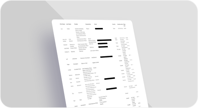 First Name Last Name Position Organization Email Country Industry sector Regis date Luis Cabra Executive Managing Repsol Spain OG-Oil & Gas 28-09- Director, Energy Transition, Technology and Institutional Affairs; Deputy Chief Executive Officer Josu Jon Imaz Chief Executive Officer Repsol Spain OG-Oil & Gas 26-09- Jochen Eickholt Chief Executive Officer Siemens Gamesa Spain ET-Energy 12-10- Renewable Energy Technologies Eduardo Navarro de Chief Corporate Affairs Telefonica Spain DC-Digital 27-10- Carvalho and Sustainability Officer Communications José María Álvarez-Pallete Chairman and Chief Telefonica Spain DC-Digital 27-10- Executive Officer Communications Krishan N. Balendra Chairman John Keells Holdings Sri Lanka RC-Retail, 15-08- Consumer Goods & Lifestyle Leif Johansson Chairman of the Board AstraZeneca Sweden HE-Global 09-11- Health & Healthcare Peter Wolodarski Editor-in-Chief Dagens Nyheter Sweden ME-Media, 31-10- Entertainment and Sport Linnéa Kornehed Falck Chief Marketing Officer, Einride Sweden SCT-Supply 18-11- Deputy Chief Executive Chain & Officer and Founder Transportation Marcus Brennecke Managing Partner; Global EQT Sweden PI-Private 07-11- Co-Head, Equity Investors Börje Ekholm President and Chief Ericsson Sweden DC-Digital 30-09- Executive Officer Communications Erik Ekudden Chief Technology Officer Ericsson Sweden DC-Digital 30-09- Communications Stella Medlicott Senior Vice-President; Ericsson Sweden DC-Digital 30-09- Chief Marketing Officer Communications and Head, Marketing and Corporate Relations Åsa Tamsons Senior Vice-President; Ericsson Sweden DC-Digital 30-09- Head, Business Area Communications Technologies and New Businesses Carl Bildt Co-Chair European Council on Sweden 19-10- Foreign Relations (ECFR) Helena Helmersson Chief Executive Officer H & M (Hennes & Sweden RC-Retail, 03-11- Mauritz) Consumer Goods & Lifestyle Jacob Wallenberg Chairman Investor Sweden PI-Private 30-09- Investors Tobias Billström Minister for Foreign Ministry of Foreign Sweden 22-11- Affairs Affairs of Sweden Johan Forssell Minister for International Ministry of Foreign Sweden 24-11- Development Affairs of Sweden Cooperation and Foreign T rade H.R.H. Prince Daniel of Sweden Prince of Sweden and Office of H.M. the Sweden 26-10- Duke of Västergötland King of Sweden Niclas Mårtensson Chief Executive Officer Stena Line Sweden SCT-Supply 08-11- Chain & Transportation Anna Borg President and Chief Vattenfall Sweden EU-Energy 30-09- Executive Officer Utilities Mats Granryd Chairman Vattenfall Sweden EU-Energy 07-10- Utilities Joachim Rosenberg Executive Vice-President, Volvo Energy Sweden 15-08- Volvo Group; President Andrea Fuder Executive Vice-President; Volvo Group Sweden AU-Automotive 15-08- Chief Purchasing Officer Niklas Gustafsson Chief Sustainability Volvo Group Sweden AU-Automotive 18-08- Officer; Head, Corporate Affairs Martin Lundstedt President and Chief Volvo Group Sweden AU-Automotive 11-08- Executive Officer Lars Stenqvist Chief Technology Officer Volvo Group Sweden AU-Automotive 12-08- Sami Atiya President, Robotics and ABB Switzerland ET-Energy 15-11- Discrete Automation; Technologies Member of the Group Executive Committee Karin Lepasoon Chief Communications & ABB Switzerland ET-Energy 26-10- Sustainability Officer Technologies