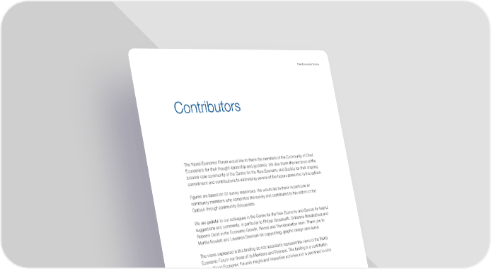 28 Chief Economists Outlook Contributors The World Economic Forum would like to thank the members of the Community of Chief Economists for their thought leadership and guidance. We also thank the members of the broader core community of the Centre for the New Economy and Society for their ongoing commitment and contributions to addressing several of the factors presented in this outlook. Figures are based on 22 survey responses. We would like to thank in particular all community members who completed the survey and contributed to this edition of the Outlook through community discussions. We are grateful to our colleagues in the Centre for the New Economy and Society for helpful suggestions and comments, in particular to Philipp Grosskurth, Sriharsha Masabathula and Roberto Crotti in the Economic Growth, Revival and Transformation team. Thank you to Martha Howlett and Laurence Denmark for copyediting, graphic design and layout. The views expressed in this briefing do not necessarily represent the views of the World Economic Forum nor those of its Members and Partners. This briefing is a contribution to the World Economic Forum’s insight and interaction activities and is published to elicit comments and further debate. World Economic Forum Aengus Collins, Head, Economic Growth, Revival and Transformation, Centre for the New Economy and Society Kateryna Karunska, Insight Specialist, Economic Growth, Revival and Transformation, Centre for the New Economy and Society Saadia Zahidi, Managing Director, World Economic Forum and Head, Centre for the New Economy and Society
