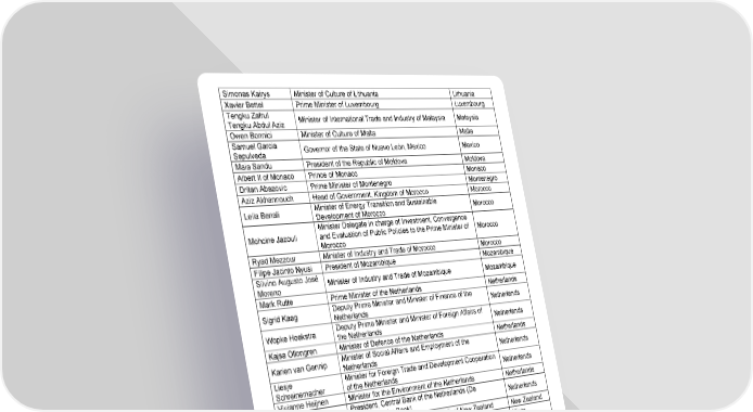 World Economic Forum Annual Meeting , 16 - 20 January 202 3 7 / 12 Simonas Kairys Minister of Culture of Lithuania Lithuania Xavier Bettel Prime Minister of Luxembourg Luxembourg Tengku Zafrul Tengku Abdul Aziz Minister of International Trade and Industry of Malaysia Malaysia Owen Bonnici Minister of Culture of Malta Malta Samuel Garcia Sepulveda Governor of the State of Nuevo León, Mexico Mexico Maia Sandu President of the Republic of Moldova Moldova Albert II of Monaco Prince of Monaco Monaco Dritan Abazovic Prime Minister of Montenegro Montenegro Aziz Akhannouch Head of Government, Kingdom of Morocco Morocco Leila Benali Minister of Energy Transition and Sustainable Development of Morocco Morocco Mohcine Jazouli Minister Delegate in charge of Investment, Convergence and Evaluation of Public Policies to the Prime Minister of Morocco Morocco Ryad Mezzour Minister of Industry and Trade of Morocco Morocco Filipe Jacinto Nyusi President of Mozambique Mozambique Silvino Augusto José Moreno Minister of Industry and Trade of Mozambique Mozambique Mark Rutte Prime Minister of the Netherlands Netherlands Sigrid Kaag Deputy Prime Minister and Minister of Finance of the Netherlands Netherlands Wopke Hoekstra Deputy Prime Minister and Minister of Foreign Affairs of the Netherlands Netherlands Kajsa Ollongren Minister of Defence of the Netherlands Netherlands Karien van Gennip Minister of Social Affairs and Employment of the Netherlands Netherlands Liesje Sch reinemacher Minister for Foreign Trade and Development Cooperation of the Netherlands Netherlands Vivianne Heijnen Minister for the Environment of the Netherlands Netherlands Klaas Knot President, Central Bank of the Netherlands (De Nederlandsche Bank) Netherlands Damien O'Connor Minister of Trade and Export Growth of New Zealand New Zealand Mohamed Bazoum President of the Republic of Niger Niger Ahmat Jidoud Minister of Finance of Niger Niger Isa Ali Ibrahim Pantami Minister for Communications and Digital Economy of Nigeria Nigeria Zainab Shamsuna Ahmed Minister of Finance, Budget and National Planning of Nigeria Nigeria Godwin Emefiele Governor of the Central Bank of Nigeria Nigeria Nicolai Tangen Chief Executive Officer, Norges Bank Investment Management, Norway Norway Anne Beathe Tvinnereim Minister of International Development of Norway Norway Espen Barth Eide Minister of Climate and Environment of Norway Norway Said Mohammed Ahmed Al - Saqri Minister of Economy of Oman Oman Mian Muhammad Shahbaz Sharif Prime Minister of Pakistan Pakistan Bilawal Bhutto Zardari Federal Minister of Foreign Affairs of Pakistan Pakistan